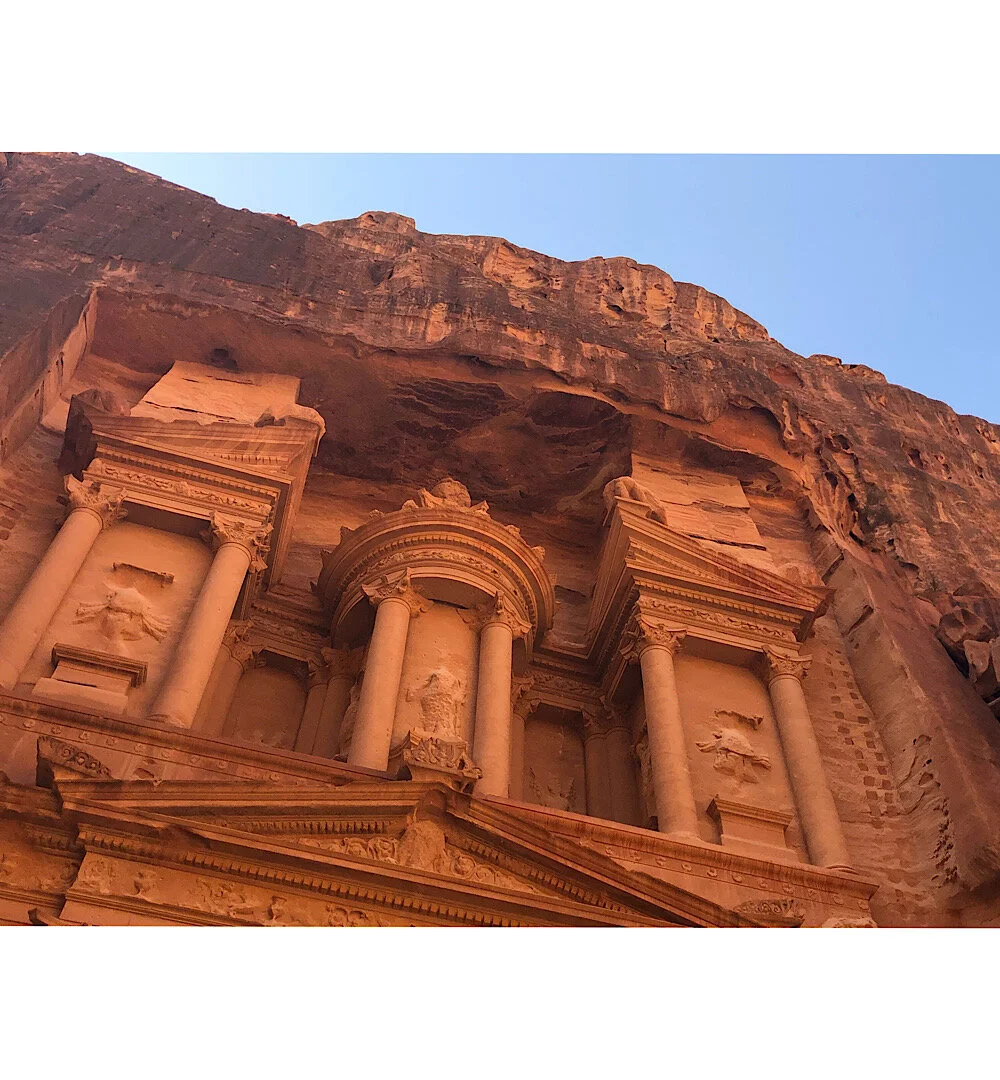 To reach the heart of the Nabatean city, we first had to walk through the Siq, a narrow fissure between the city’s rosy colored mountains. This would have been a magical experience were it not for the many people and the speedy horse-drawn carriages that nearly ran over anybody in their path.